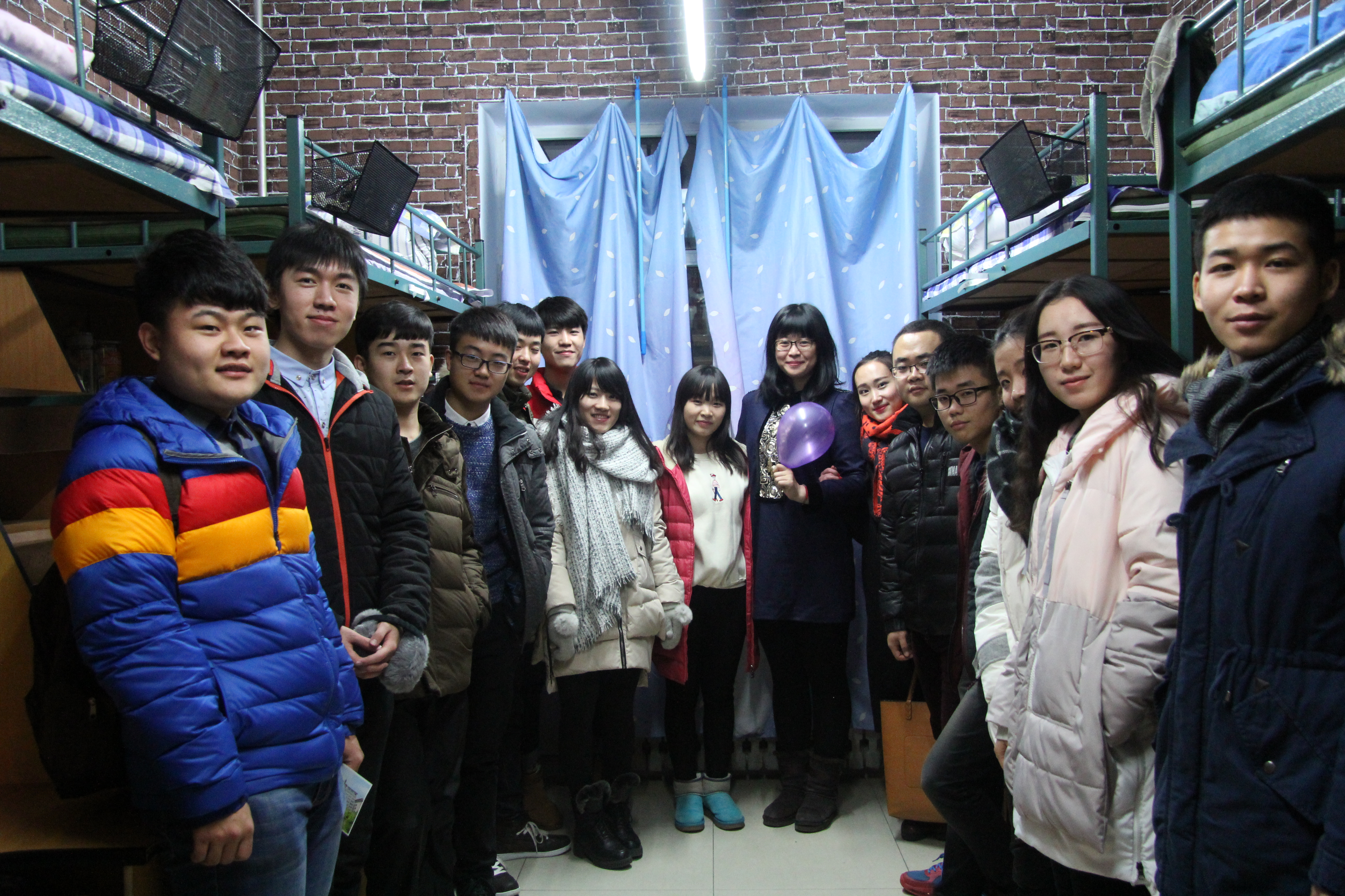 晚上6时30分,活动正式开始。评比先从女生寝室开始,评比内容主要从寝室命名、整体活动、代表介绍、安全纪律、联谊关联五个方面展开。为了展现寝室良好形象,同时突出寝室个性,表达自己的创新思维,同学们积极围绕选择的主题,充分利用自己身边资源,在课余时间对寝室进行精心装扮。有的寝室以亲近自然为主题,将寝室装扮成森林风格;有的则巧妙利用杂物,将平时被我们所忽视的东西制作成美观实用的装饰品,让寝室独具特色;有的同学为突出同学友谊,将室内环境营造出温馨和谐的氛围。面对如此丰富的创意和巧妙的布置,评委们赞不绝口,对寝室的装扮给充分予肯定。在打分环节结束后,评委们与同学们拍照留念。晚上8时许,活动圆满结束。