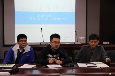 本次活动以塞缪尔·P·亨廷顿的学术著作《变革社会中的政治秩序》及其延伸的政治发展为议题展开讨论。活动中,赵德昊首先从政治制度化的必要条件,政治良好政党制度的形成与演进,政治制度化的重要属性等角度简要介绍了该著作核心内容。万辰光则以该书内容为切入点,以现代性与现代化的区别为主题深入剖析了公民社会与民主国家的必要产生条件及其内在联系,并在此基础上延伸至中国政治秩序现状的解读。张力伟在二人发言的基础上就政治发展的内涵界定,民主化与政体发展的必然性,社会自主性与政治文明的关联性等方面作出了更进一步的延伸说明。活动的最后,三位主讲人与参加活动的学生展开了自由讨论,共同思考了经济高度发展与政治民主化的关联,过度民主化政体导致的效率降低等问题。