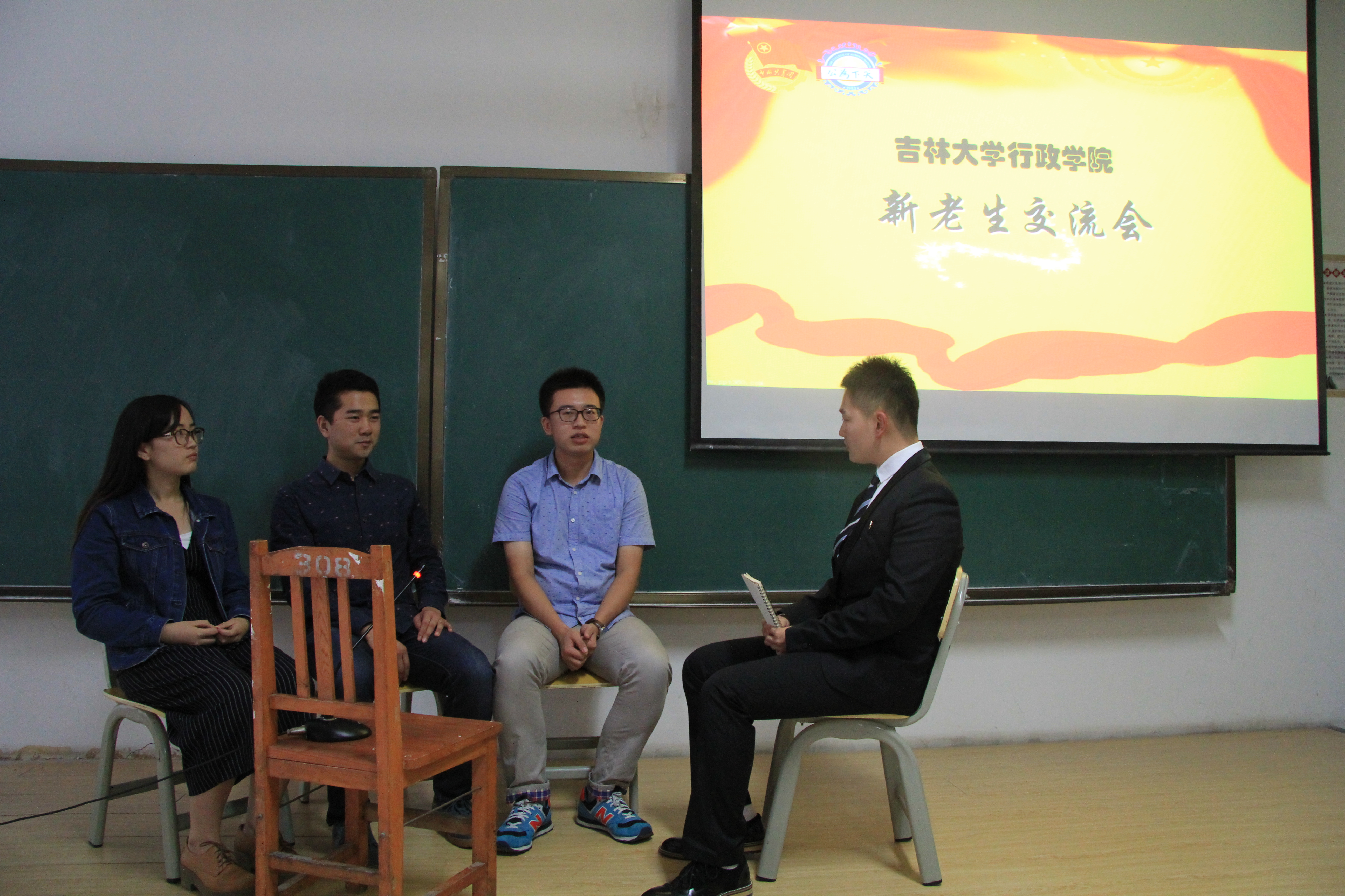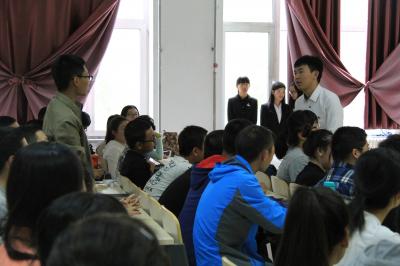 五大学生组织的纳新宣传视频,生动有趣的视频使新生收获欢乐的同时,也使新生们对各大组织有了初步的了解。短暂的休息之后,新老生交流会步入正题。首先,2012级优秀学生代表成方圆向新生介绍了自己的学习经验,她建议同学们在大学期间多多尝试各种经历,以求无悔的大学生活,同时还分享了自己的出国前期准备经历。随后,被保送至中国人民大学的万辰光(2012级)与同学们交流了自己的保研面试经历,并告诉大家要去体会吉大的另一种风情,努力在正确的时间做正确的事。此外,他建议新生多读书,以增加交流的谈资。最后,获得直博资格的原团委副书记夏海洋(2012级)通过学习、工作、活动和工公益四个方面,结合自身经历告诉新生们应该如何平衡各项的时间,充实地度过大学四年。在随后的访谈环节中,由新生自由提问,三位优秀学生代表根据自己的经验来一一详细作答,解答了新生们的许多疑惑。活动在全场的掌声中圆满落幕。