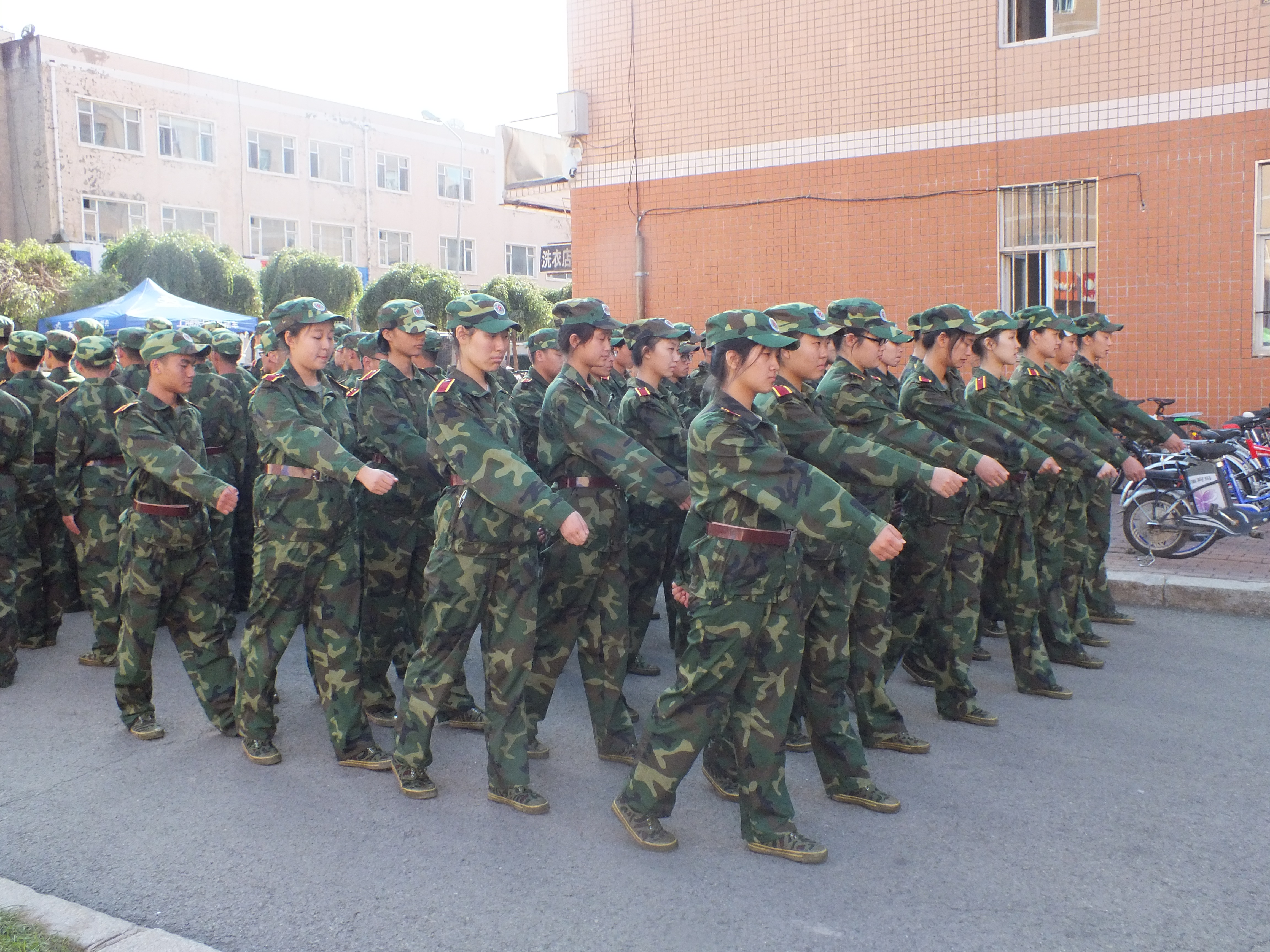 2015级新生被编在一营三连,新生在连长的带领下来到训练场地,军事训练在教官的带领下有条不紊地进行着。军训刚刚开始,未习惯高强度训练的同学们在烈日下面对繁重的任务未免疲惫不堪,动作尚显生疏散乱。但同学们都很刻苦,并未松懈,动作也愈发标准整齐。