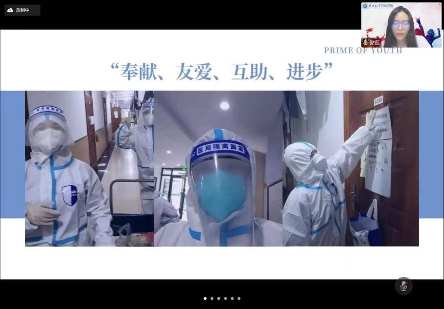 团委宣传工作而继续努力,立足于“公共精神、独立人格”的院训,加强宣传工作的深度,对内提升亲和力、对外提高影响力;志愿者代表赵蕊、优秀共青团员代表卫玉欣分享了疫情下吉大人、行政人的勇毅担当,表达了对逆行而上、勇挑重担的志愿者的敬意和感谢;学生组织成员代表于润泽介绍了应急管理期间极速赛车