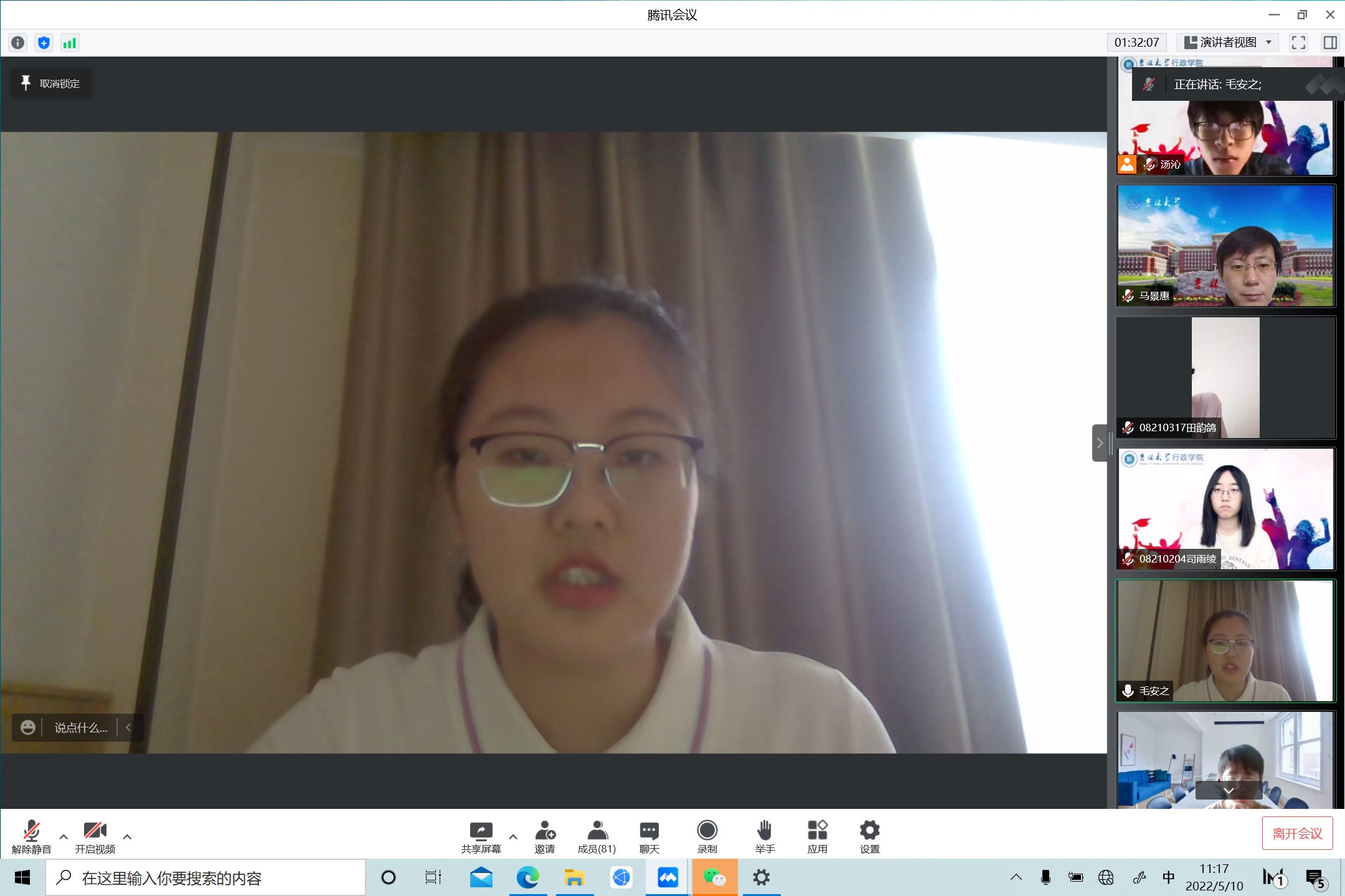 广大青年教师、青年学生趁热打铁、学在前头,结合学科专业和个人实际,围绕大会和习近平总书记重要讲话精神分享了感想和体会。大家纷纷表示,庆祝中国共产主义青年团成立100周年大会盛况空前,催人奋进,这是对过去100年间中国青年在党的领导下爱国奋斗建功立业的全面总结,也是向全国青年勠力同心迈向“第二个百年”奋斗目标的时代号召,能够经历这样一个激动人心的历史时刻,既荣幸又振奋。政治学系青年教师郑倩分享了自己入团时的情景,表示作为高校教师要在教书育人中时刻牢记青年兴则国家兴、青年强则国家强,教育引导团员青年将自身发展与人民幸福、国家命运、民族复兴紧密联系在一起,将小我融入大我、将青春献给祖国。毕业生代表毛安之表示,习近平总书记在大会上的讲话深入人心,中国的未来是青年的,中华民族的未来也是青年的,时代已经将火炬传到了当代青年手里,面对重重考验,同学们定将坚定理想信念,唱响青春之歌,不断向前奋进。在校生代表张云航回顾了共产主义信仰之光指引中国青年一路前行的百年历程,结合极速赛车