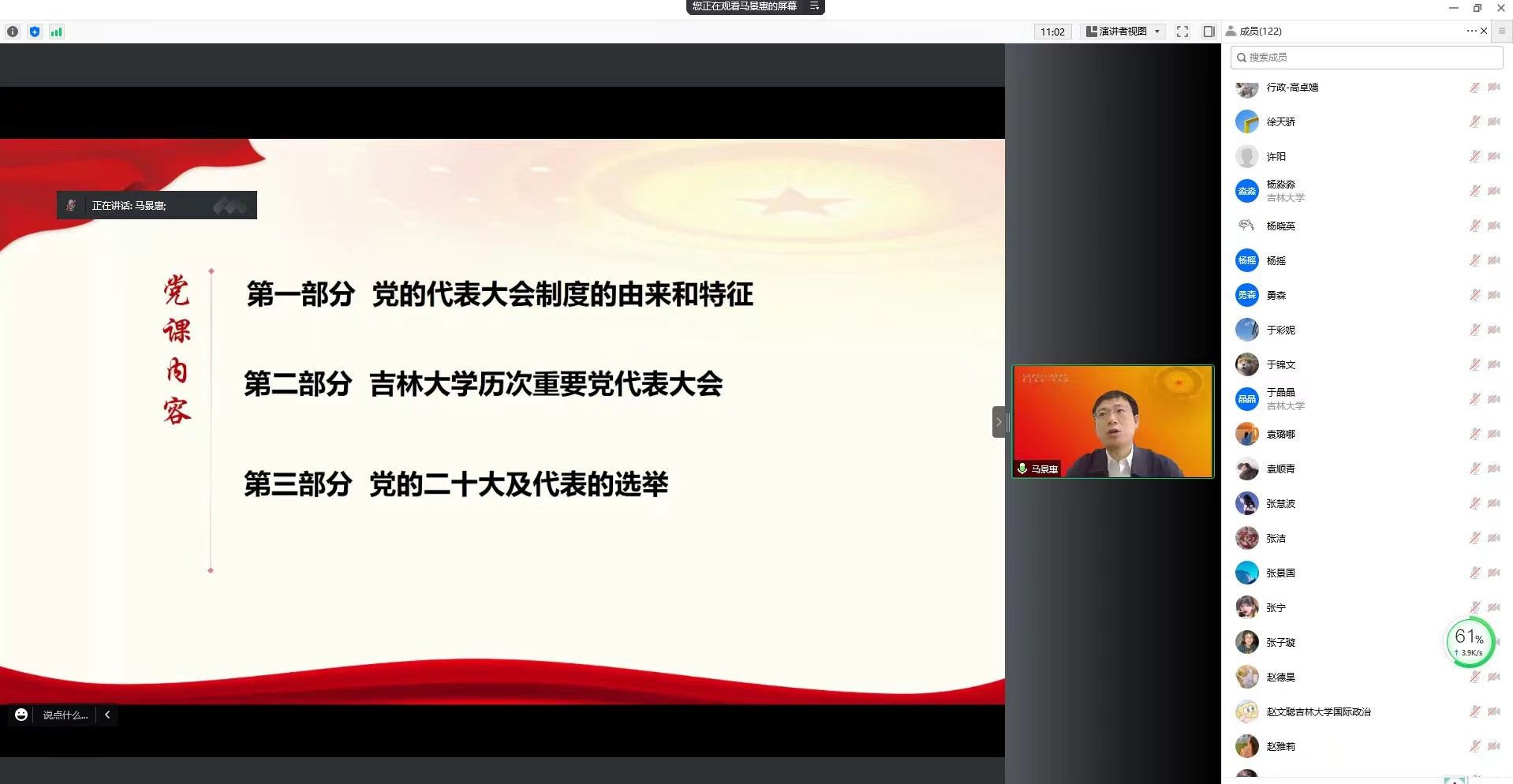 本科生辅导员、研究生辅导员、本科生及研究生党支部委员会成员、2022届全体毕业生党员在线上听课。党课由极速赛车