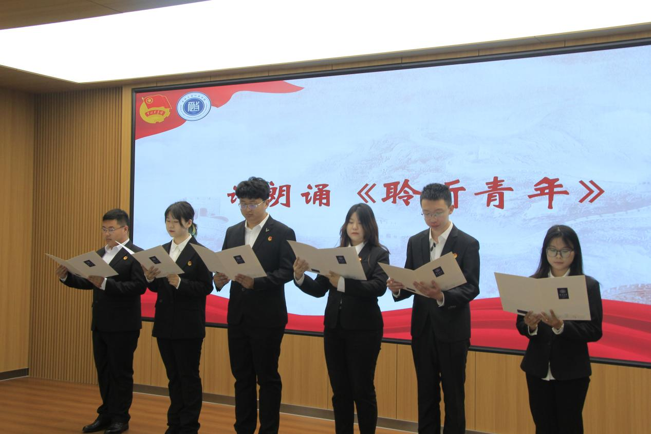 团委2022-2023学年“创先争优”表彰名单,授予5个先进团支部、56名优秀共青团员、23名优秀共青团干部、2名优秀学生记者荣誉称号。受表彰学生代表,2019级本科生于润泽等6名青年团员在大会现场朗诵组诗《聆听青年》,他们激扬澎湃的声音在会场回荡不绝,收获了来自参会人员的阵阵掌声。
