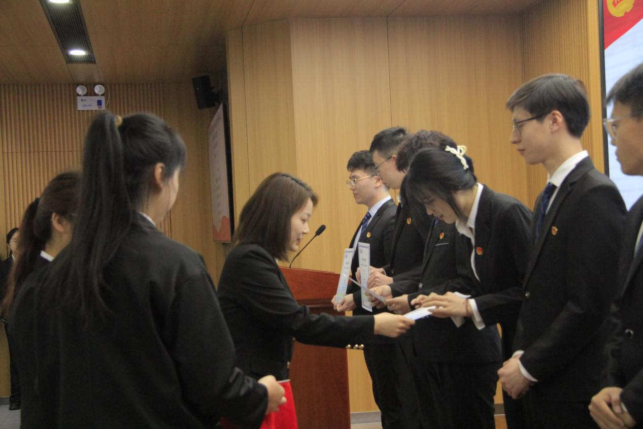 大会进行新发展团员入团仪式。仪式伊始,高卓嫱为三名新发展团员佩戴团徽。面对鲜艳的团旗,院团委副书记、2020级本科生陈佳妮带领大会全体团员庄严宣誓,雄浑的誓言与紧攥的右拳表达了极速赛车