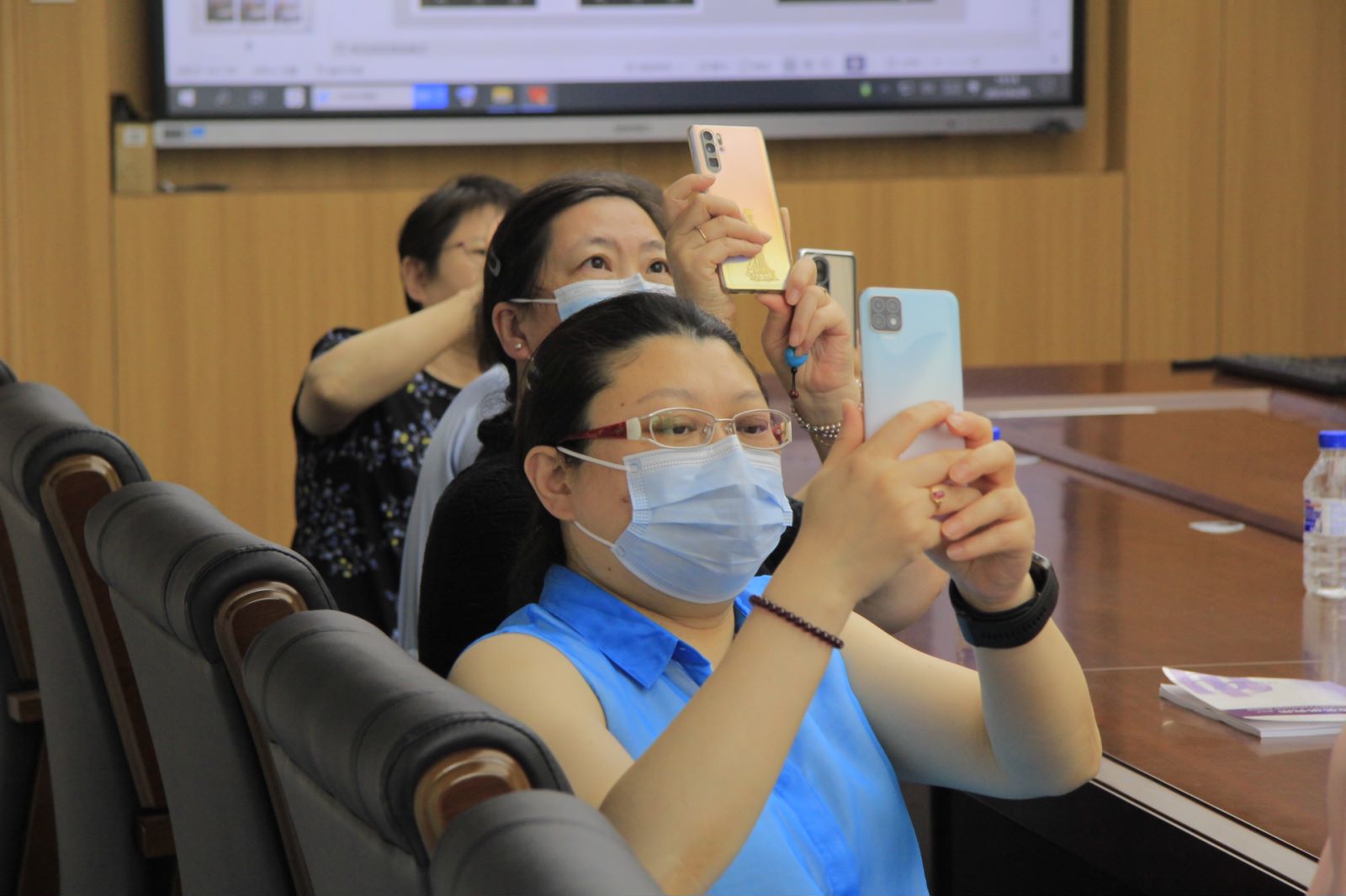 女性教职工分享讲解手机摄影的入门技巧。