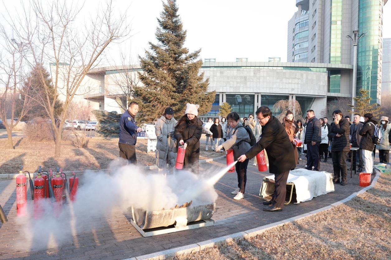 保卫处消防科的工作人员在东荣大厦门前北侧停车场进行一次实践教学——详细讲解并演示了各类消防器材的正确操作方法。通过认真观摩消防器材使用的全过程,师生们学习到了宝贵的消防知识,掌握了各项消防器材的正确使用方法。