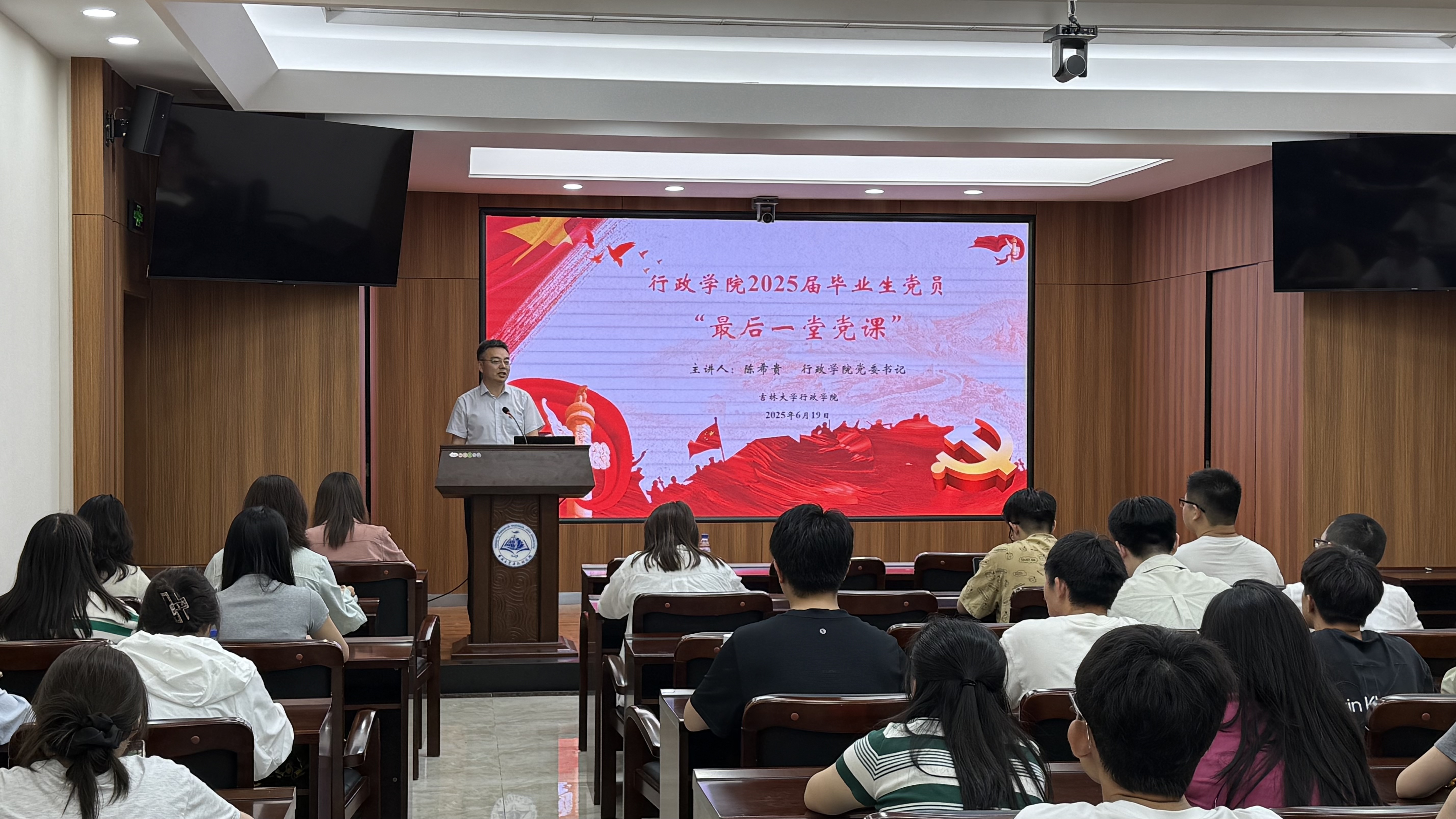 党委书记陈希贵在东荣大厦B303室为2025届毕业生党员讲授毕业前的“最后一堂党课”。