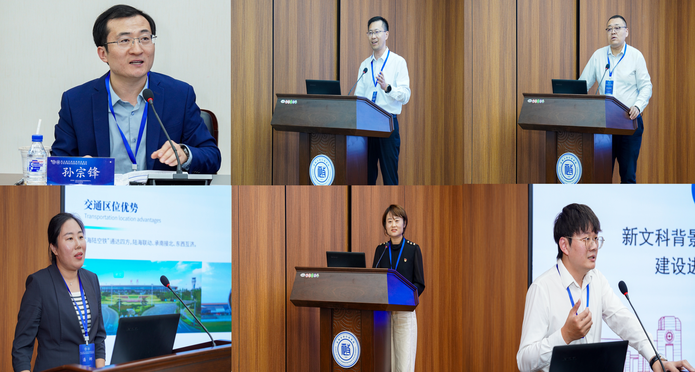 副院长孙宗锋教授主持。南通市市域社会治理现代化指挥中心副主任胡高明,中交(天津)疏浚工程有限公司党委副书记、工会主席宋孟岐,山东省日照市东港区委组织部副部长潘娜,长春市二道区东站街道十委社区党委书记林静,上海哲寻信息科技有限公司副总经理徐坤分别以《科技赋能 协同共治:构建智慧高效城市治理新体系的南通实践》《在流动国土上探索基层治理现代化的典型范式》《发挥党建引领作用 推动基层治理提质增效》《党建引领校社协同:基地共建解难题,融合发展立新标》《新文科背景下数据治理实验室建设进展及未来展望》为题发表演讲。