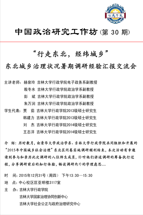 上一篇:“国家治理:理论、制度与经验”学术研讨会成功举办