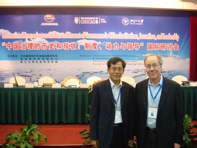 近日,由中央编译局世界发展战略研究部、芝加哥大学北京中心和浙江大学社会科学学部合作主办的“中国治理的历史和现状:制度、动力与领导”国际研讨会在杭州金溪山庄隆重举行。来自美国、英国、加拿大、澳大利亚、新加坡、日本、中国等国家和港澳台地区的知名学者及浙江大学的部分师生出席研讨会。此次研讨会很荣幸邀请了2007年诺贝尔经济学奖获得者、芝加哥大学Roger B. Myerson教授出席会议并做主题报告。