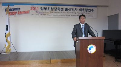 韩国教育部举行这次活动的目的主要是在政府交换奖学金获得者之中,在韩国获得学位,回到各自的国家工作以后,有一定名望并且取得成功的人士中通过申请、选拔再次邀请到韩国进行再研修。韩国国立国际教育院院长丁相基到会致辞。