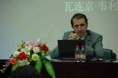 韦利奇科教授在报告中为我们系统介绍了乌克兰自独立以来的对外政策以及与俄罗斯的外交关系。在对外政策中包括五个方面:一、乌欧关系。他指出,乌欧关系是乌克兰外交关系中的重中之重,加入欧盟是乌克兰追求的关键性战略目标。二、乌克兰与北约的关系。他指出,寻求安全是乌克兰积极发展与北约关系的出发点,指出二者在战略安全方面进行了广泛的合作。三、广泛的双边关系。他指出乌克兰致力于与世界各国——包括中国——建立广泛的双边关系,开展积极的双边合作。四、对外经贸。他指出乌克兰积极寻求发展对外经贸联系,广泛的开展与发展中地区的经贸合作,与中东、拉美、亚洲和非洲都有着广泛的经贸往来。五、侨民保护与服务。他指出,随着乌克兰对外联系的加强,侨民的增加使得侨民保护与服务成为了乌克兰外交活动中日益重要的一部分。最后,在乌俄关系问题上,他首先回顾了乌俄关系的历史,并指出,在独立后,乌克兰致力于寻求独立的外交,并且强调了与欧洲的重要联系。但是俄罗斯是乌克兰的重要邻国,双边关系非常重要,因此,乌克兰仍然重视与俄罗斯的关系,积极致力于与之进行良好的合作。在报告最后,韦利奇科教授还就师生们关于霸权主义、“橙色革命”、乌克兰经济体制转型、从“华约”走向“北约”等相关问题与大家进行了交流。