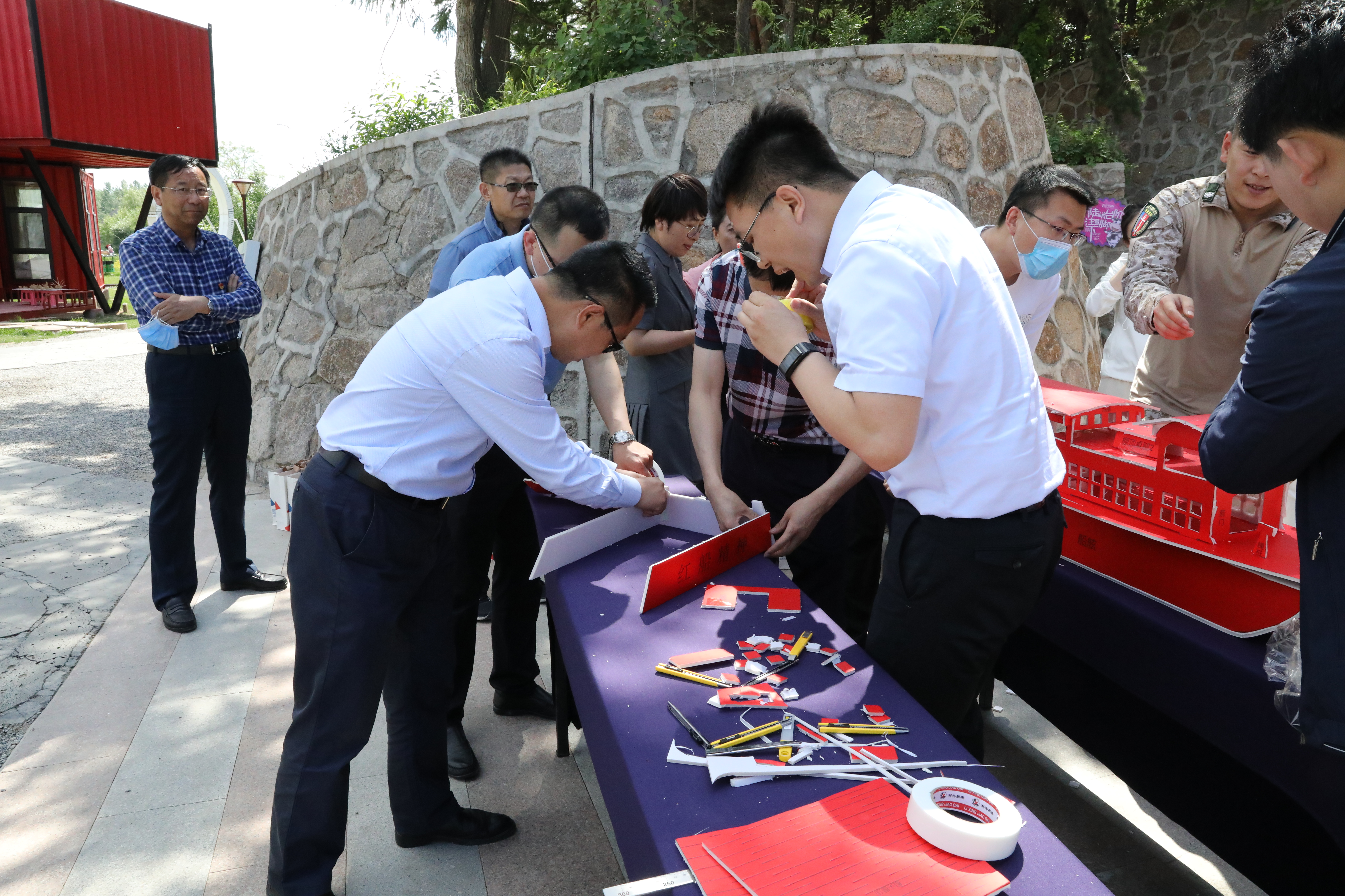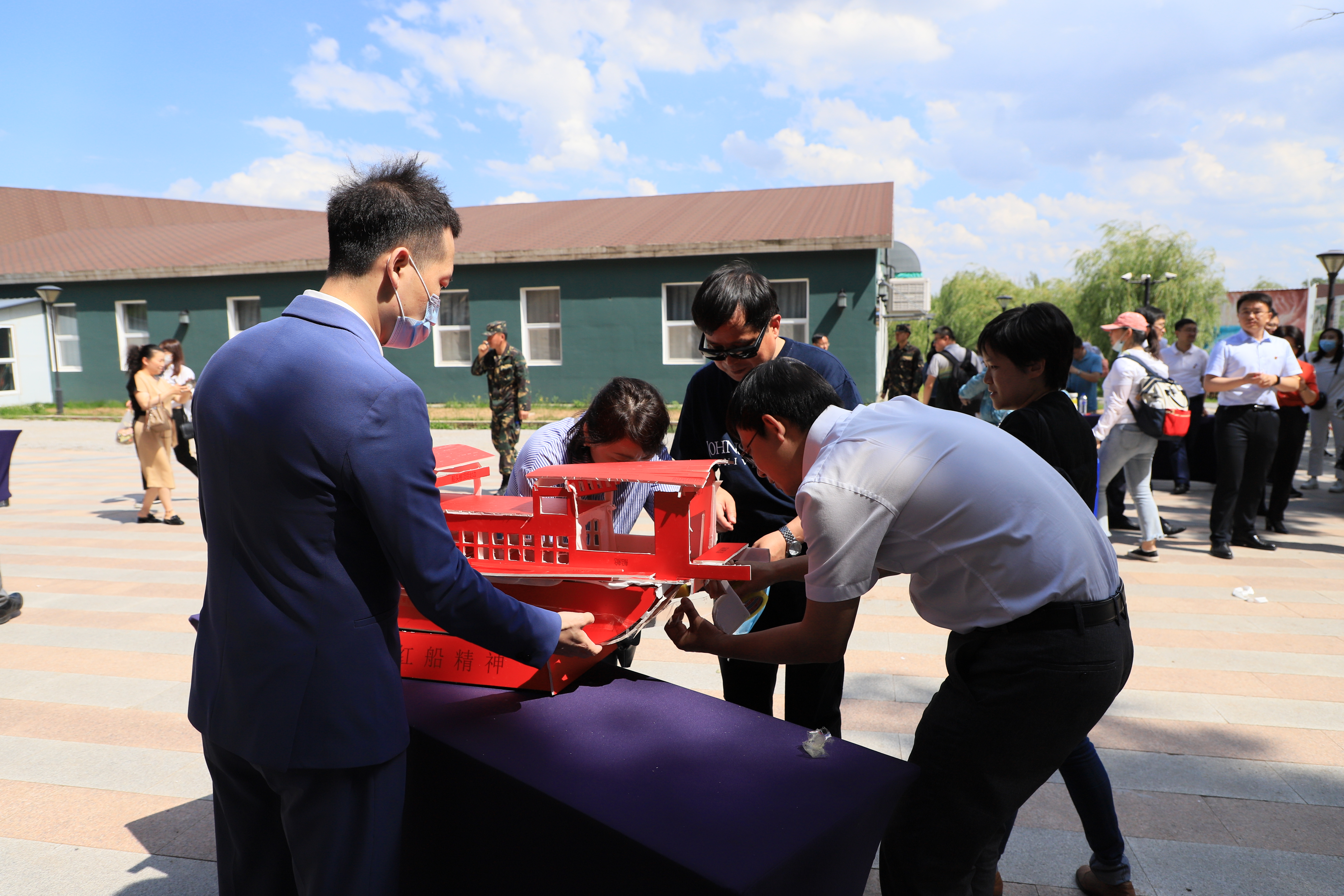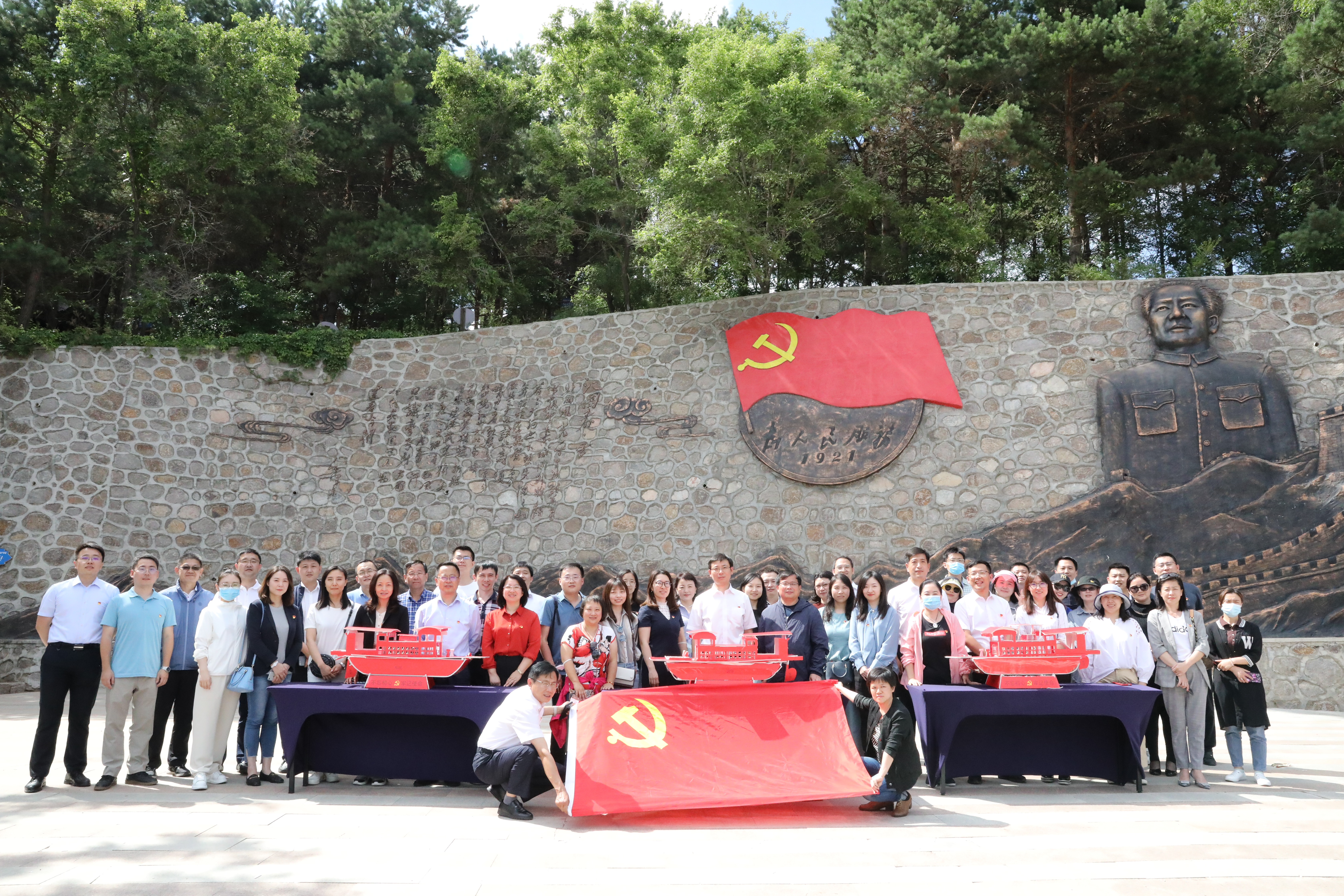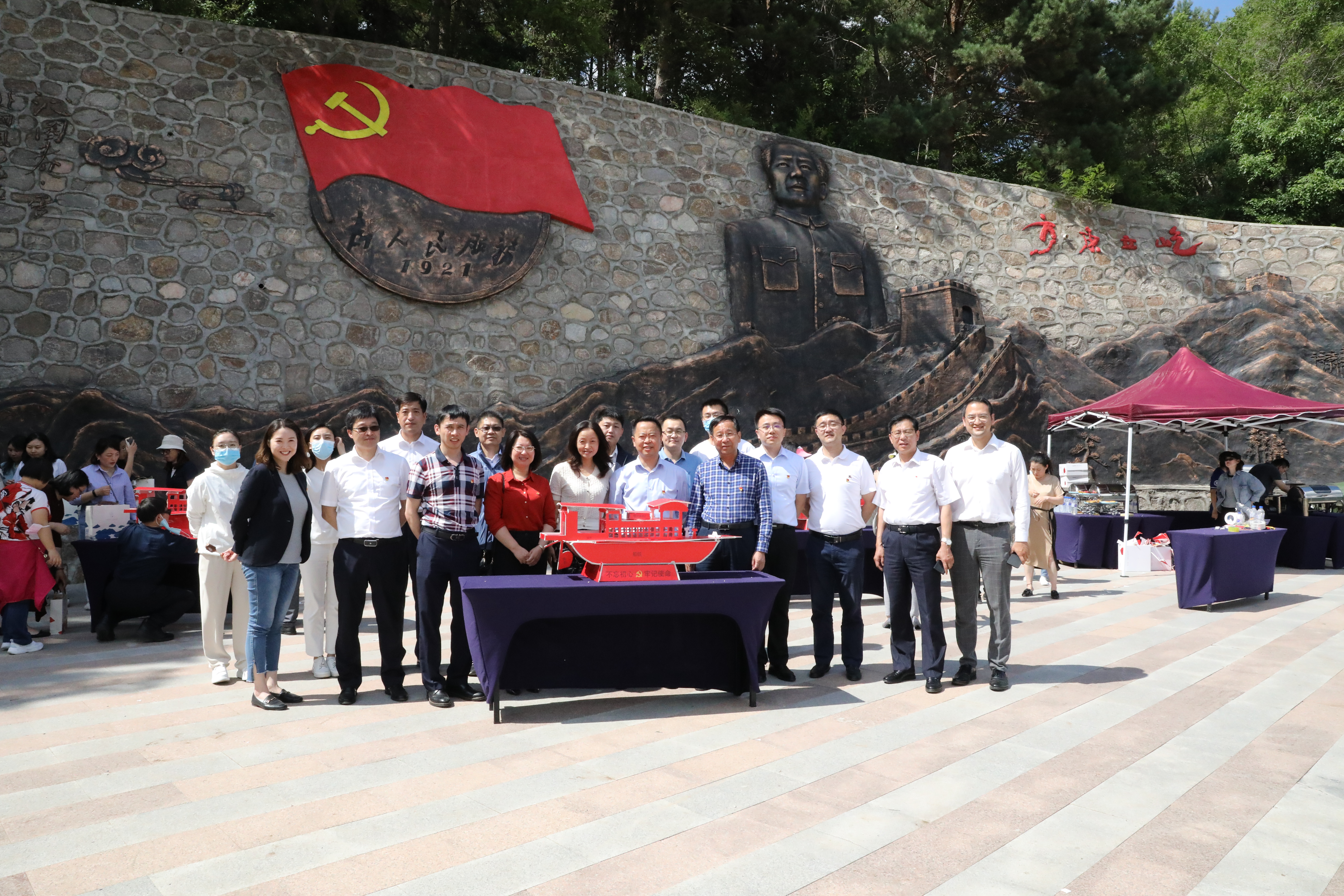 下午13时,周敏局长一行带领全体党员到长春国际影都展示中心参观调研,实地感受净月高新区在加快吉林全面振兴全方位振兴中实现的新突破、展现的新作为、彰显的新担当。随后,大家来到慢山里研学基地开展党建学习,在毛主席巨大浮雕前分组制作红船模型,党员们重温了以中国共产党开天辟地、敢为人先的首创精神,坚定理想、百折不挠的奋斗精神,立党为公、忠诚为民的奉献精神为核心要义的“红船精神”。各支部围绕学习理解“红船精神”展开热烈交流研讨,各支部书记做主题发言。