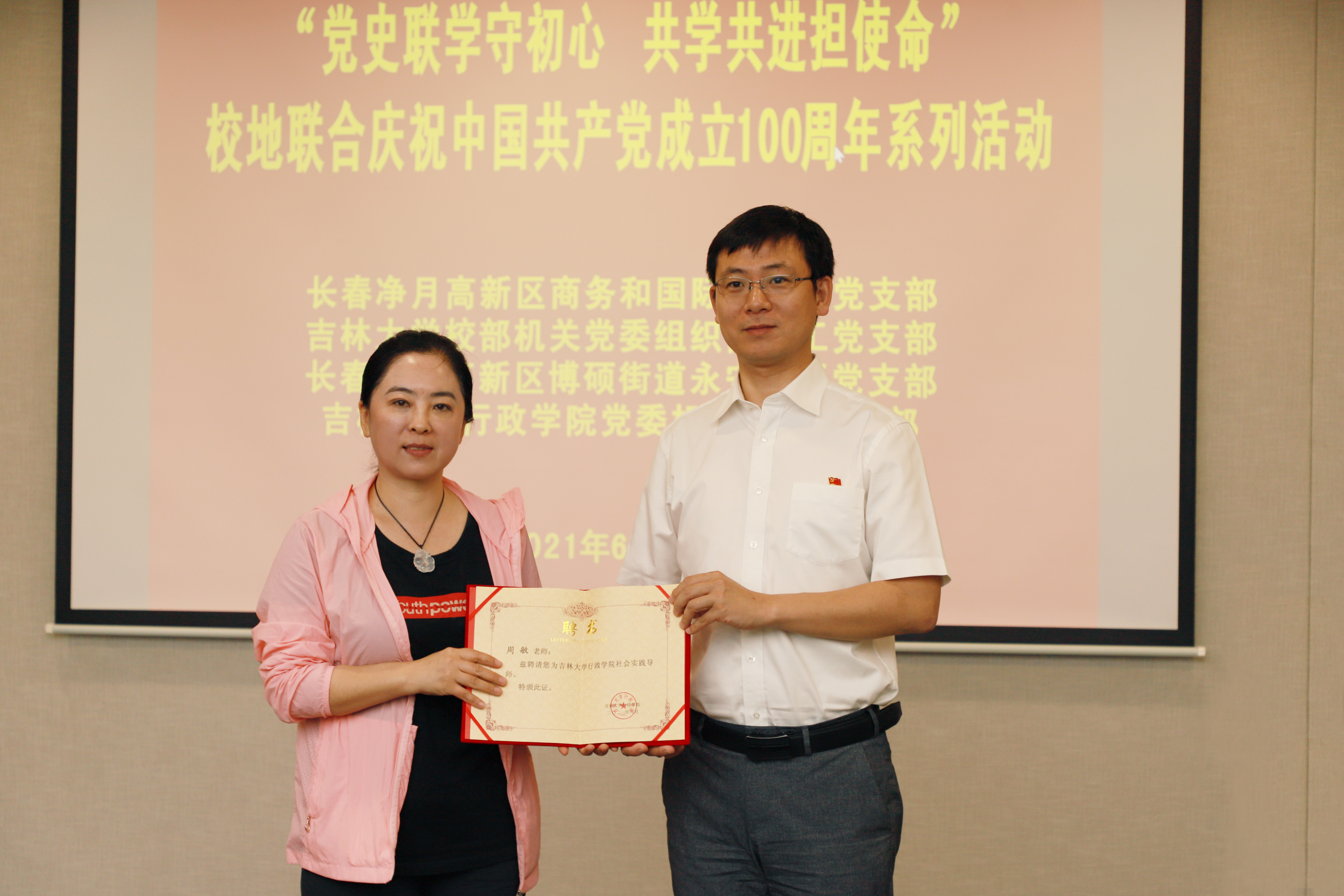党委机关教工党支部于6月19日,联合长春净月高新技术产业开发区商务和国际合作局党支部、长春净月高新技术产业开发区博硕街道永安社区党支部共同开展“党史联学守初心 共学共进担使命”校地共庆中国共产党成立100周年系列活动。校党委组织部部长巩英春、机关党委书记郑爽、党委组织部正处级组织员张蓼红、极速赛车