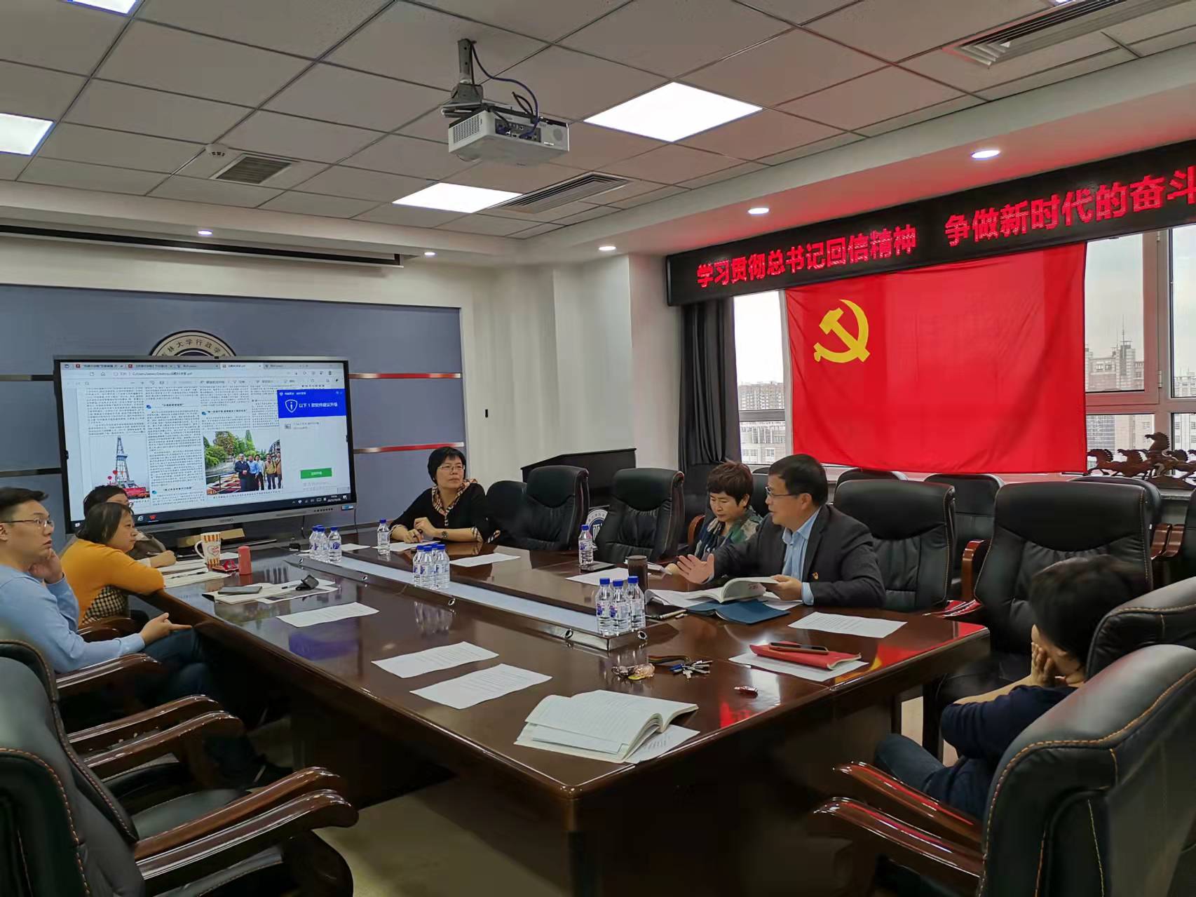 机关教工党支部在东荣大厦1214会议室召开了“学习贯彻总书记回信精神,争做新时代的奋斗者”主题党日活动,校党建联络员魏鹤影同志和支部部分党员参加了会议。会议由机关教工党支部书记季洪涛主持。