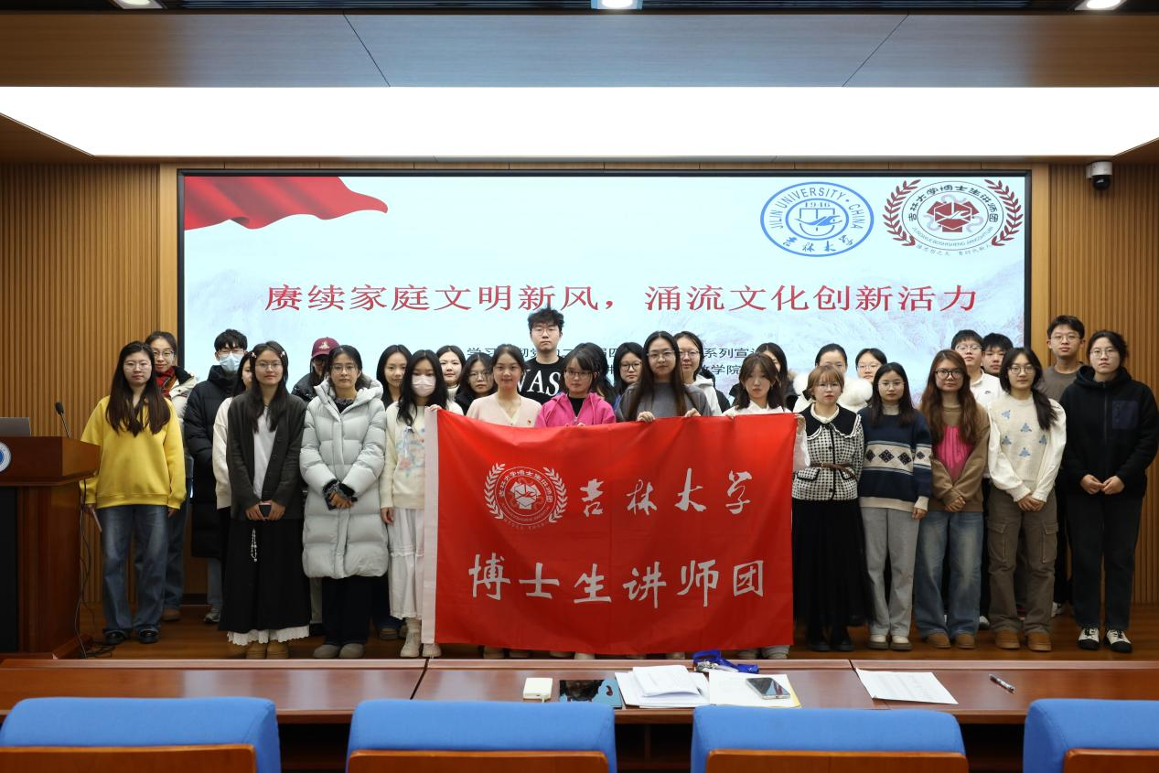 博士生讲师团成员王馨颍同志作题为《赓续家庭文明新风,涌流文化创新活力》的主题宣讲。王馨颍同志以党的二十届四中全会关于激发全民族文化创新创造活力的重要精神为指引,聚焦“家庭”这一贴近生活的切入点,详细讲解了新时代文化建设的丰富内涵。