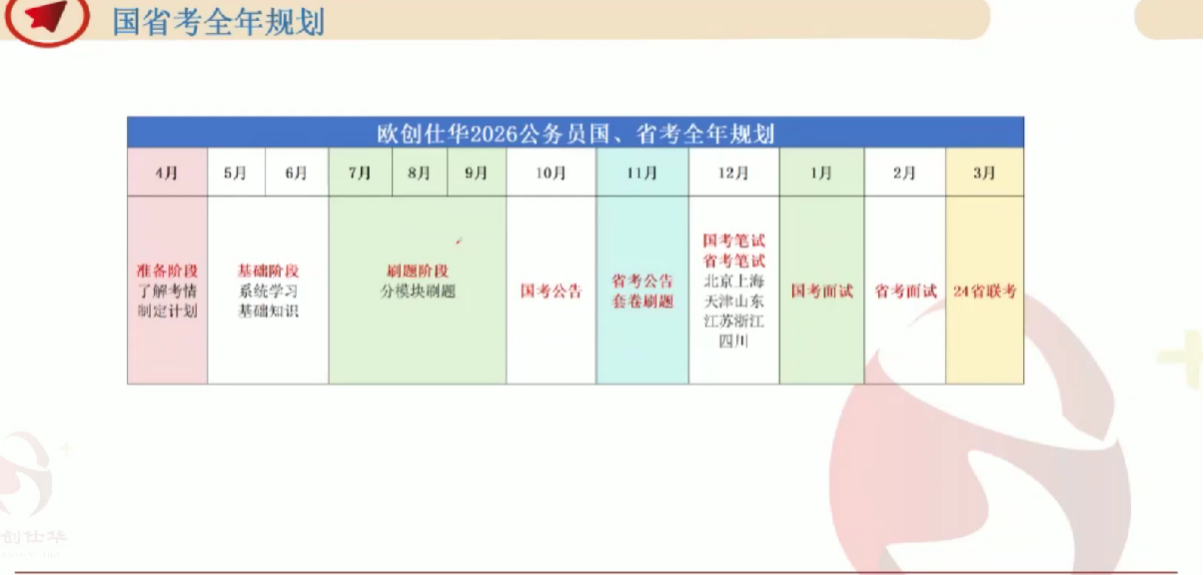 在备考策略方面,老师结合自身丰富的教学经验指导同学们科学制定备考规划。他指出,科学规划、精准施策是备考的关键,并将定向选调的备考过程划分为四个阶段:一是打牢基础,通过学习教学视频,做到熟悉考纲并夯实行测、申论基础;二是‌基础强化与专项学习,分模块进行刷题,并针对省份特色定向选调考试内容进行强化训练;三是高频刷题,用模拟卷进行查漏补缺,规范作答时间,提高正确率;四是‌冲刺阶段,重点进行真题模拟与押题冲刺。
