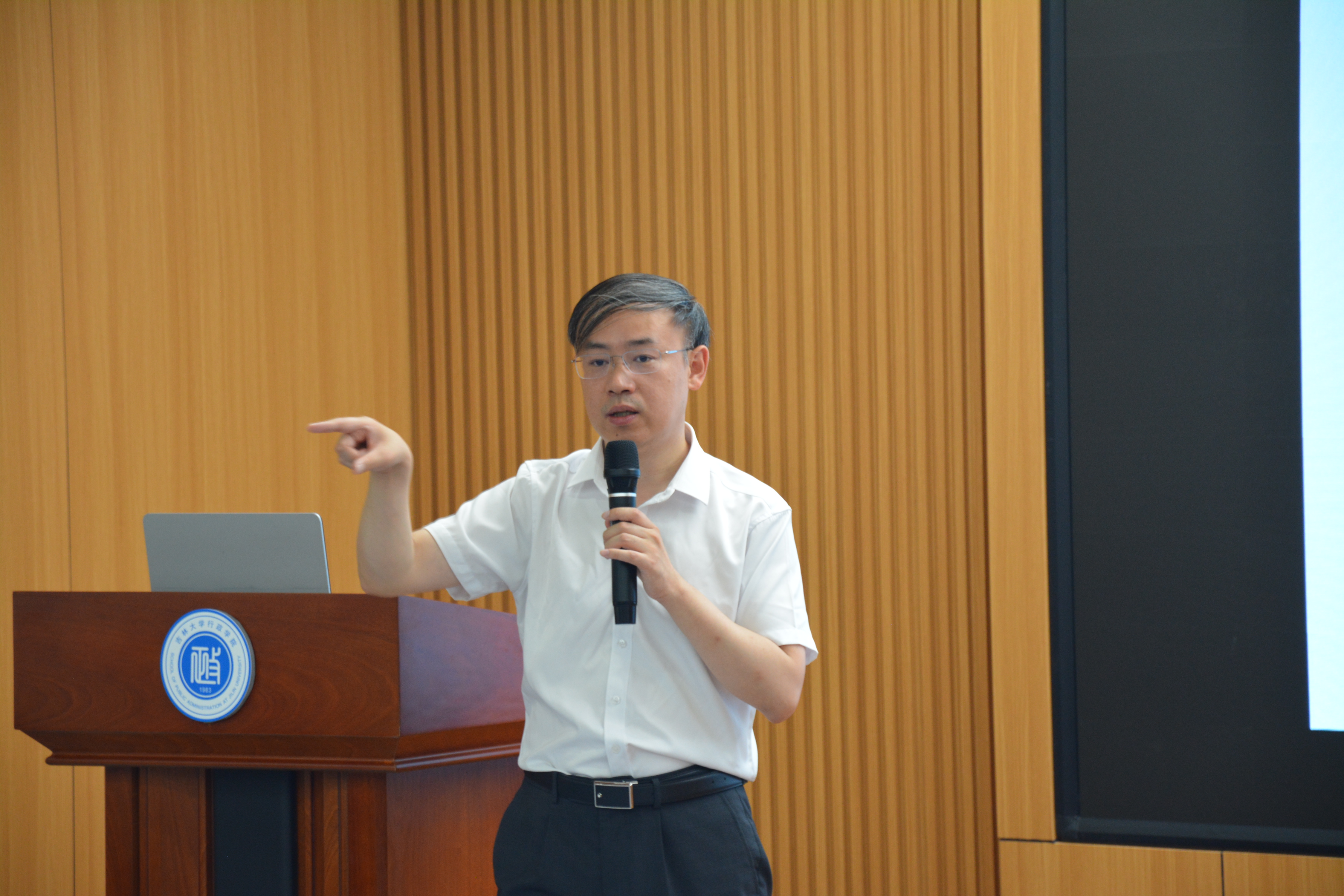 副院长、廉政研究院院长刘畅教授主持本次课程,刘畅对宋轩的到来表示了热烈欢迎和衷心感谢,并介绍了宋轩的学术经历和成就。