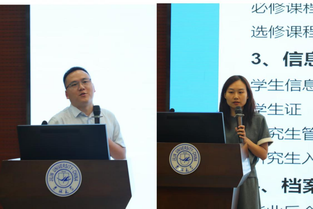 在培养方案解读环节,魏素豪详细介绍了2025版MPA培养方案的三大方向、课程结构及八大培养环节;高琛就日常管理、课程学习、论文流程等具体事项进行说明,为新生答疑解惑。