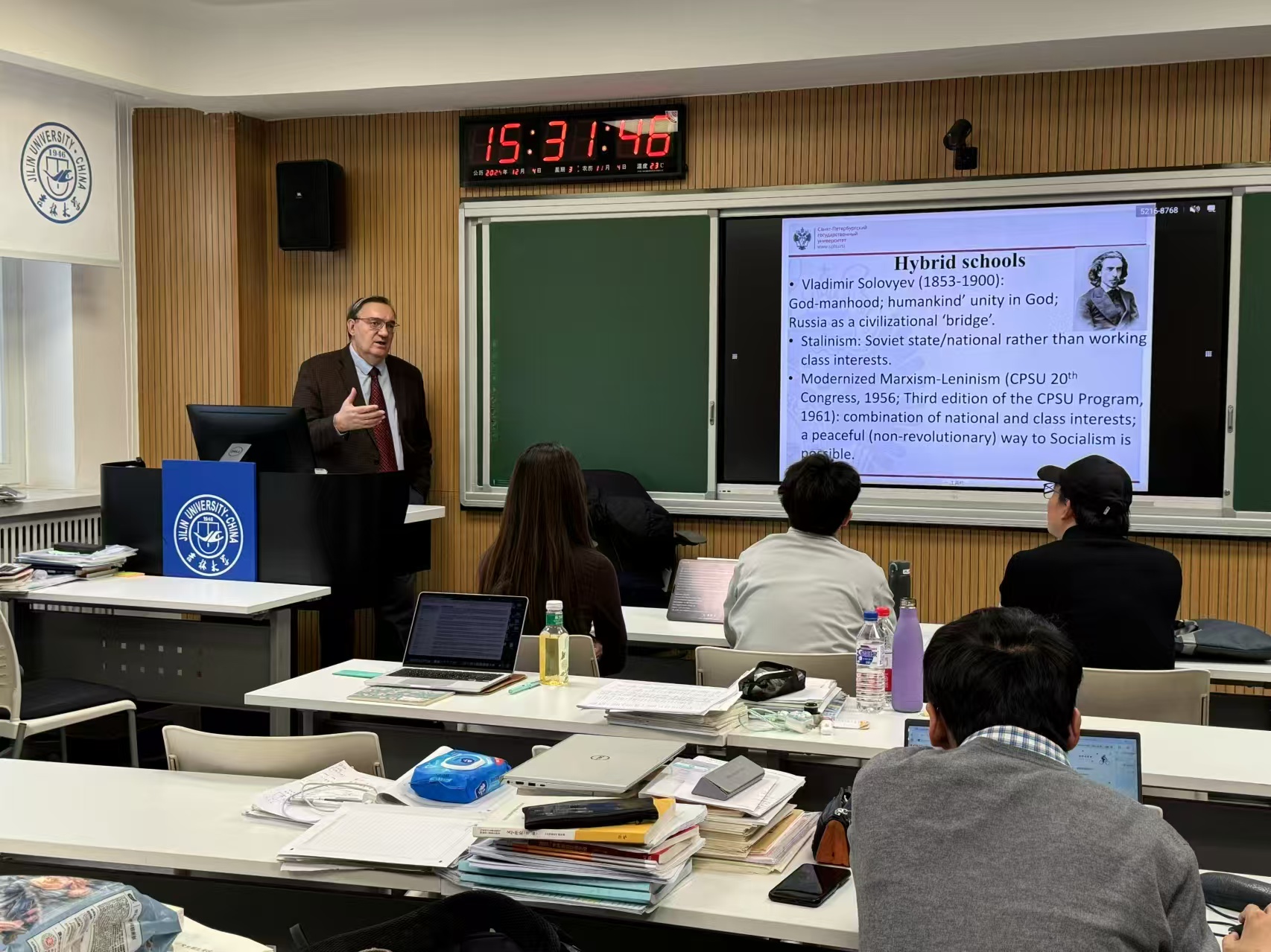 在逸夫教学楼501教室开展“名家引领”研究生精品课程(第六期)。圣彼得堡国立大学国际关系理论与历史教研室教授亚历山大·谢尔古宁(ALEXANDER SERGUNIN)应邀担任主讲嘉宾,为同学们带来了题为《俄罗斯外交政策思想和国际关系研究》的共6场次系列课程。
