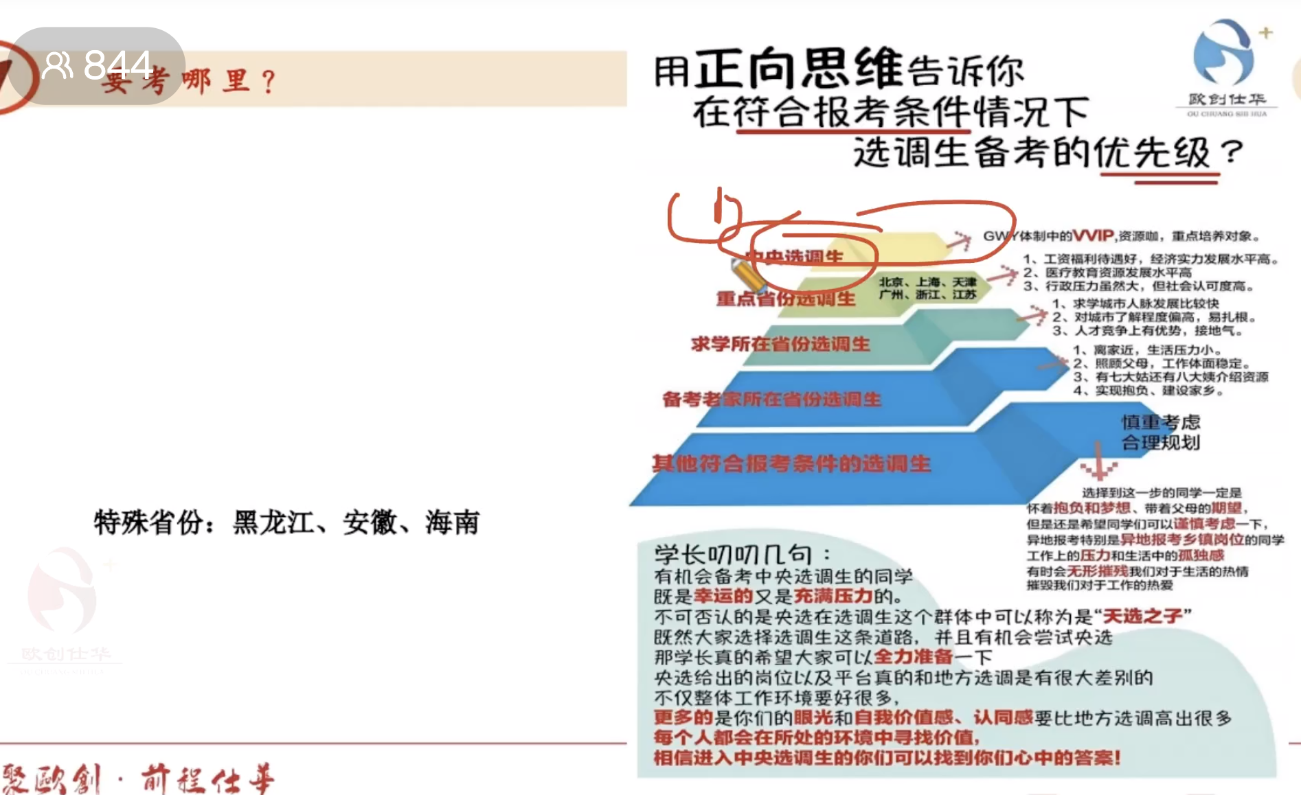 学生可以报考的定向选调生范围,包括中央选调生以及几乎所有省份的定向选调和普通选调。老师强调,报考选调生时,中共党员、学生干部、在校期间奖学金或表彰是常见条件。在备考策略方面,老师还提出了“正向思维”的概念,鼓励同学们在符合报考条件的情况下,根据自身情况和职业规划合理选择备考的优先级。