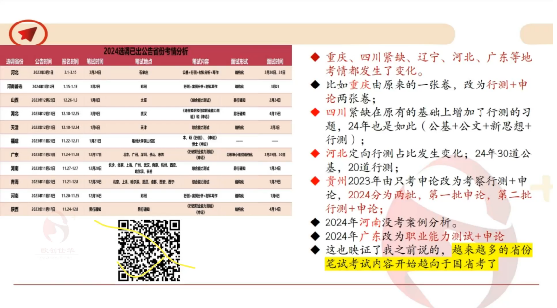 在笔试内容和国考区别方面,老师结合考试内容及分值、考试时长、笔试时间、地区差异等进行讲解,着眼于笔试时考卷侧重点的不同,就考公的省份选择进行推荐与建议。通过纵横对比东三省、京津冀、晋鲁豫考情内容,老师对上岸难度以及后续个人的发展空间进行公考深度解读,以新增考点为例提出复习方法和时间规划,帮助同学正确选择复习材料,合理采取复习策略,科学规划备考时间,做出适合自己的最优选择。